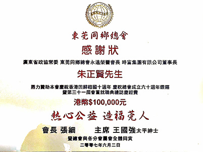 中國國務院總理朱镕基訪問溫哥華期間,朱正賢榮任籌備委員會特別顧問,組織發動千人迎歡會, 推動國家外交事業并取得圓滿成功
